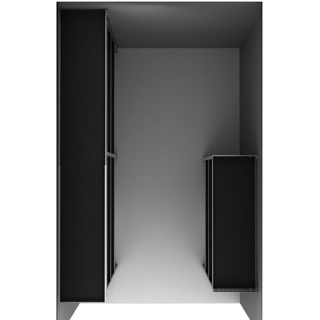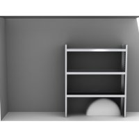 I højre side findes en reol i højden 120 cm, længde 100 cm og dybde 33 cm, også med 3 hylder inklusiv gummimåtte belægning.