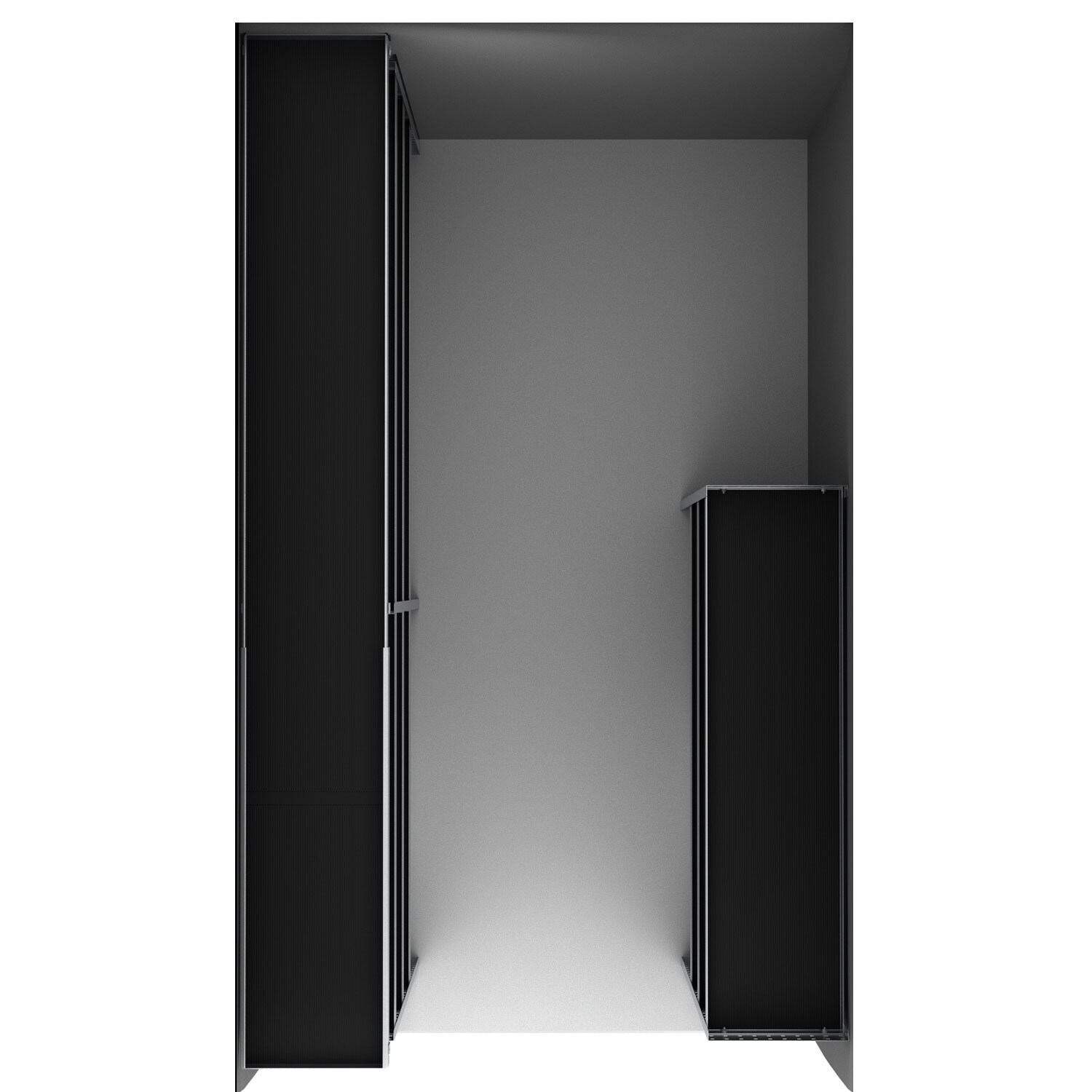 I højre side findes en reol i højden 100 cm, længde 130 cm og dybde 33 cm, også med 3 hylder inklusiv gummimåtte belægning.