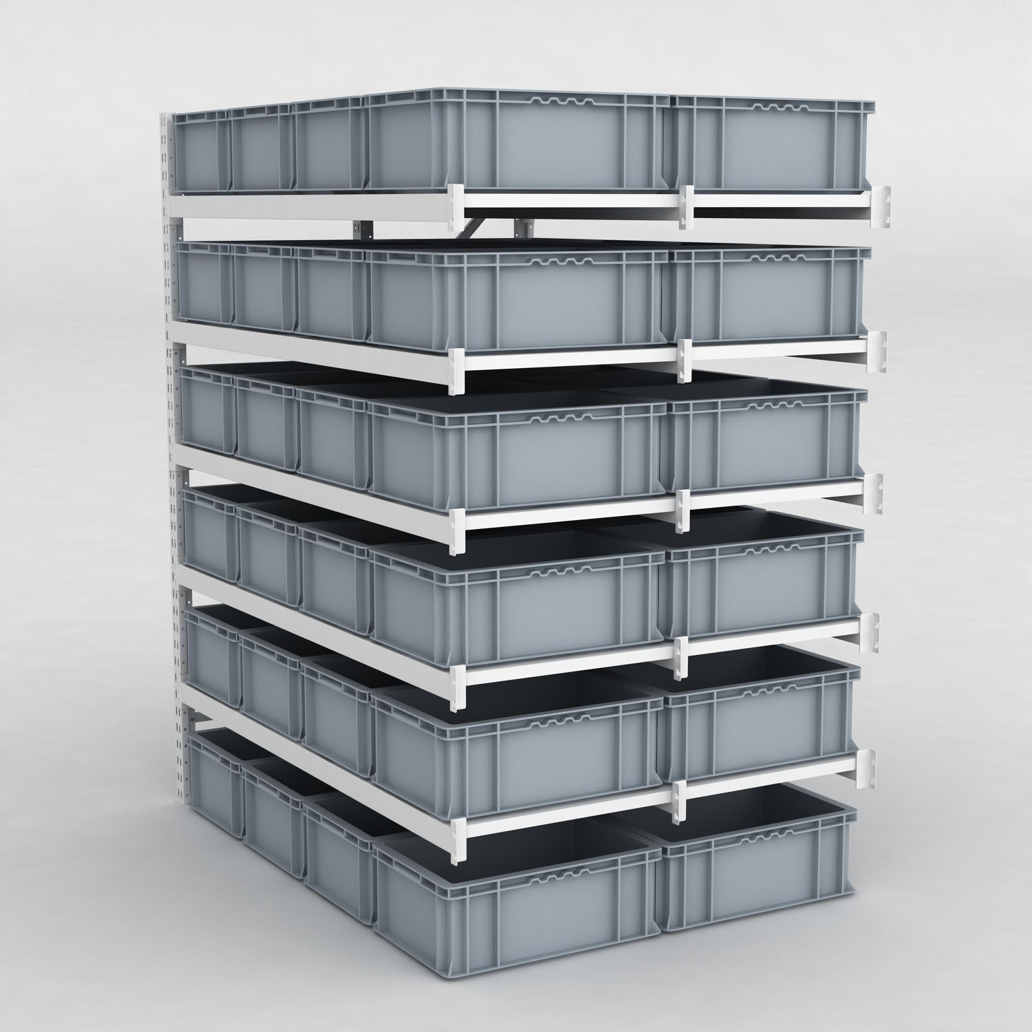 Tillægsfag lagerreol inkl. 48 grå plasterkasser | D: 120 cm